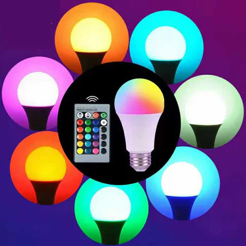 Remote Control LED Colorful Lamp – A multicolor LED bulb with remote control for easy customization, offering up to 15W of vivid lighting and energy
